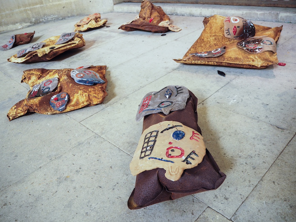 Créée in situ dans le chœur, l’œuvre à quatre mains « Insoumissions » de Camille Courier et Francine Saillant est une installation à même le sol de portraits réinterprétés de personnes ayant séjourné dans les hôpitaux psychiatriques du monde entier, du XIXème siècle aux années 1950. Les « Corps-mémoires » d’Olga Caldas rendent hommage aux victimes des crimes nazis. Les milieux de l’art brut sont des narrations multiples de la vulnérabilité créatrice, et plusieurs courants et expériences artistiques sont ici relatés, dont les travaux réalisés au Brésil dans les ateliers d’art-thérapie initiés par Nise da Silveira, pionnière dans le domaine de l’art thérapeutique. Sculptures, photos, dessins, et autres créations diversifiées côtoient des œuvres majeures d’artistes reconnus tels Jean Dubuffet, Johan Creten, André Robillard ou Michel Nedjar, ainsi que les installations de David Cohen, artiste, plasticien, psychiatre et commissaire de l’exposition.