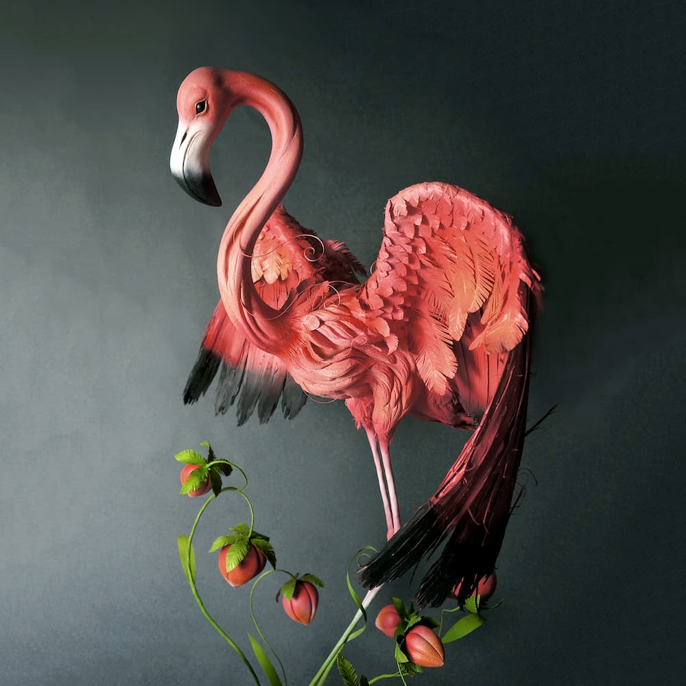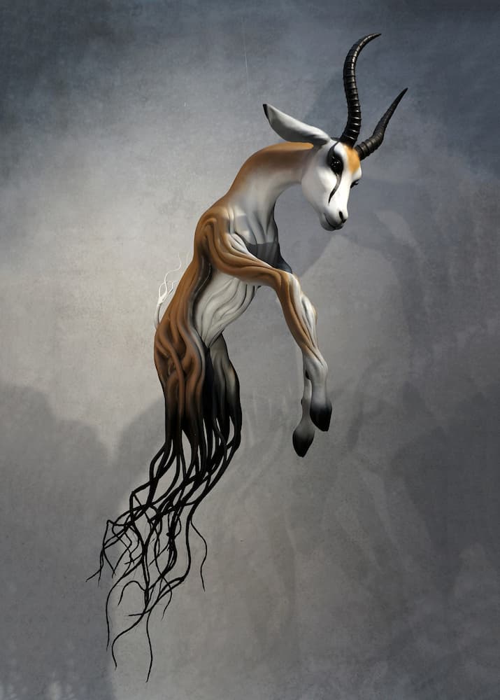 J’élabore un écosystème où le végétal et l’animal se rencontrent, fusionnent, donnant naissance à des Êtres hybrides aux essences mêlées. Cette matrice narrative commune permet un éveil sensible chez le public, qui y décèle intuitivement des formes familières, révèlant en lui un sentiment d’appartenance.