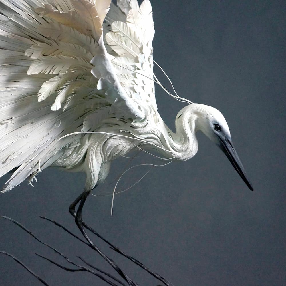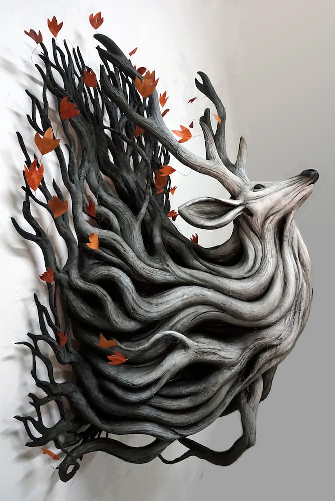 « Plasticienne du Vivant et de l’imaginaire, Astrid de Geuser explore l’Âme du Monde et donne naissance à des Êtres hybrides aux essences mêlées, rendant hommage à la faune et la flore. »