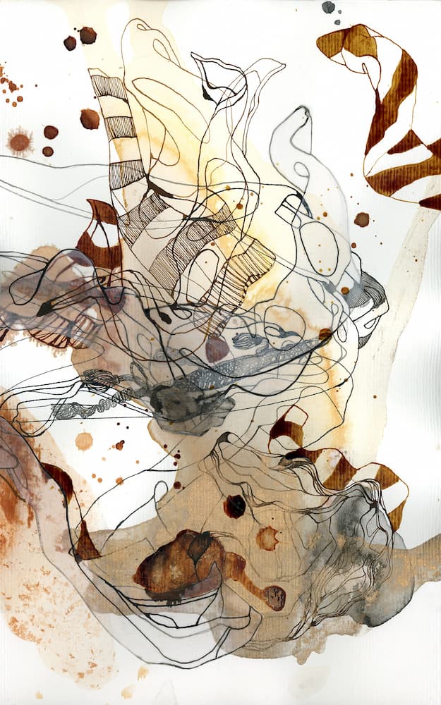 2021 - Encres, café, acrylique, collages sur carton mousse - 62,5x45 cm