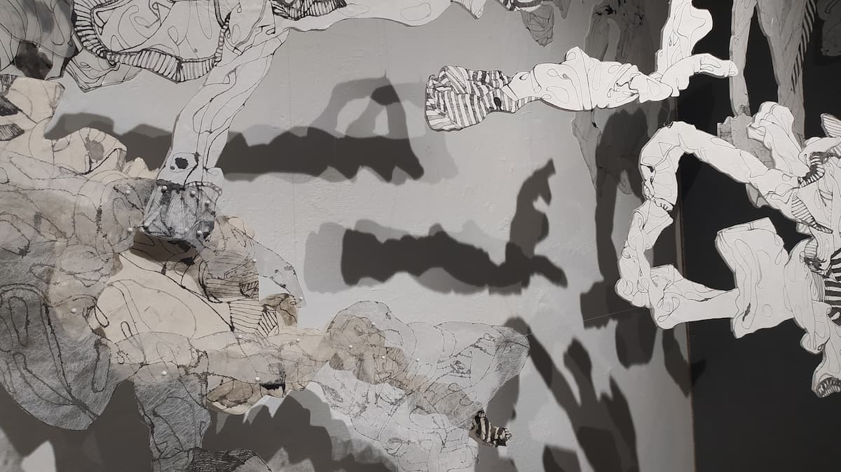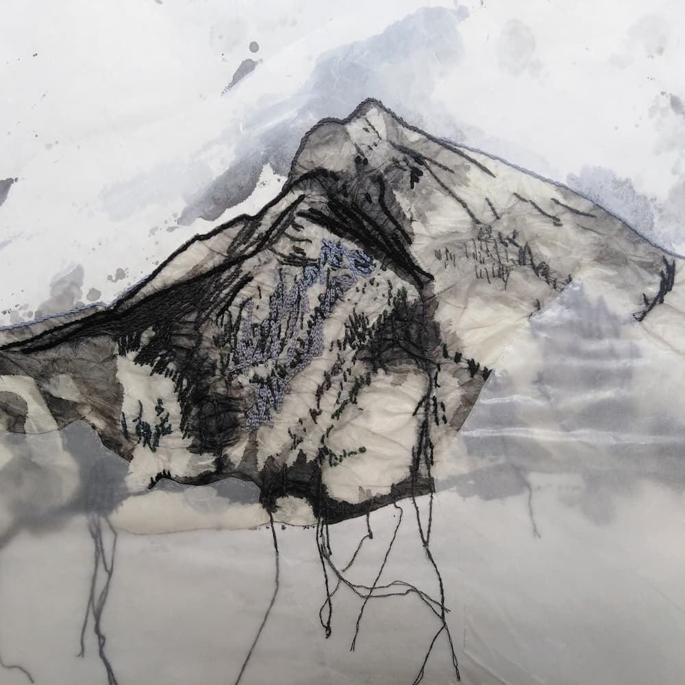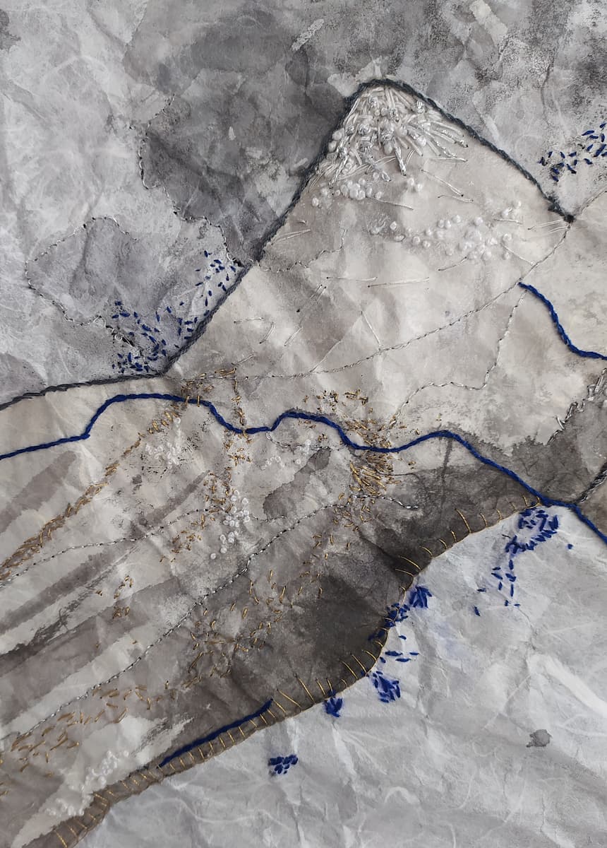 Barbara Lerch et Marie Lerch - 2023 - Encres, acrylique, pierre noire et broderies sur papiers - 76 x 52 cm - Détails