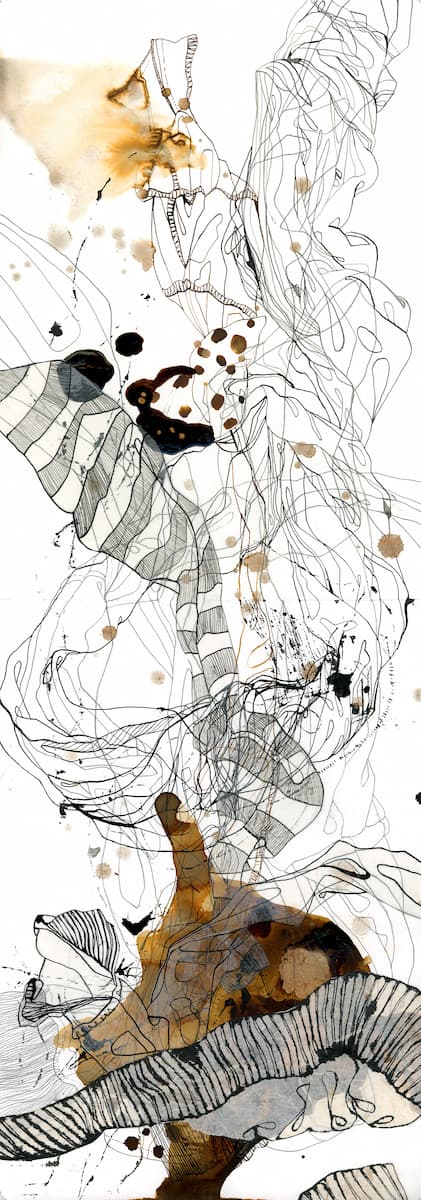 « Les dessins abstraits de Barbara Lerch empruntent leurs bruns chauds et mordorés à l’automne et leurs blancheurs translucides à l’hiver. »