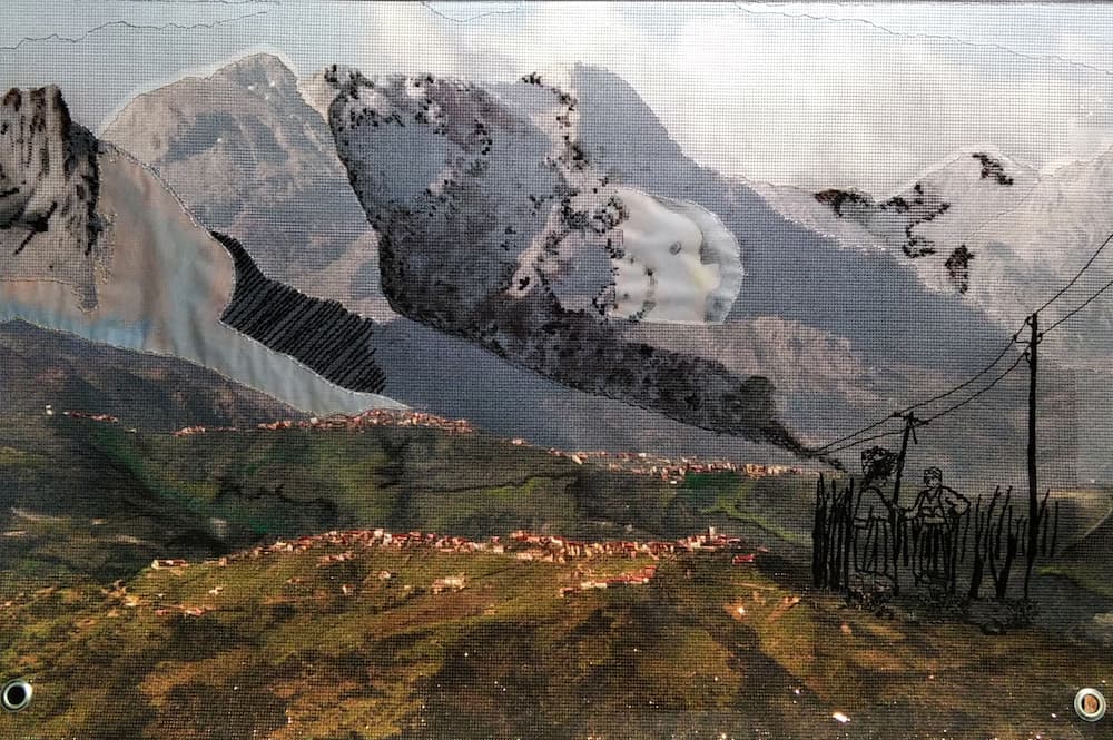 Barbara Lerch et Marie Lerch - 2024 - À partir d’une série de diapositives de Jean-Pierre Boujot, 1980 - Impression numérique sur bâche microperforée, techniques mixtes et broderie - 63x80 cm