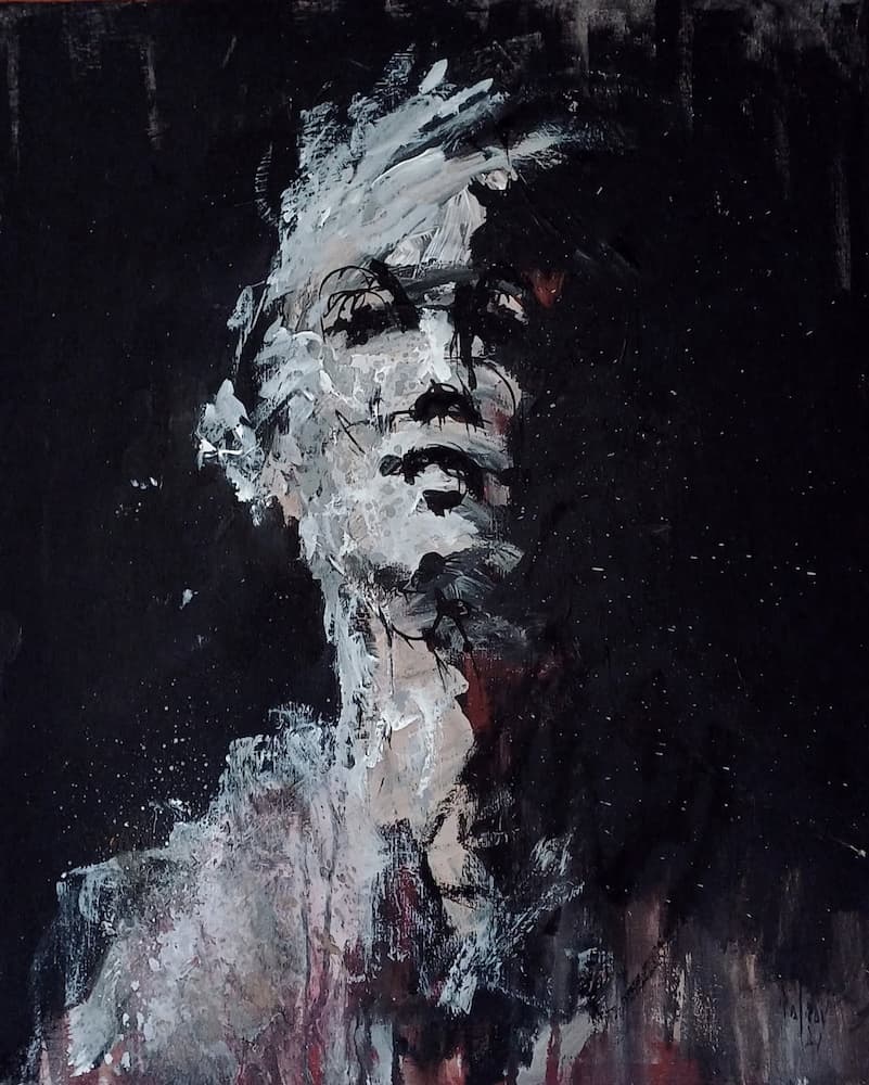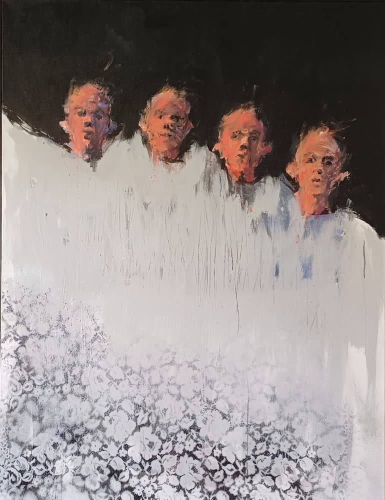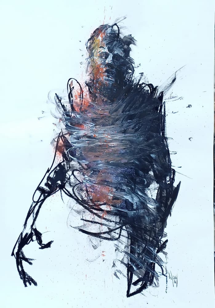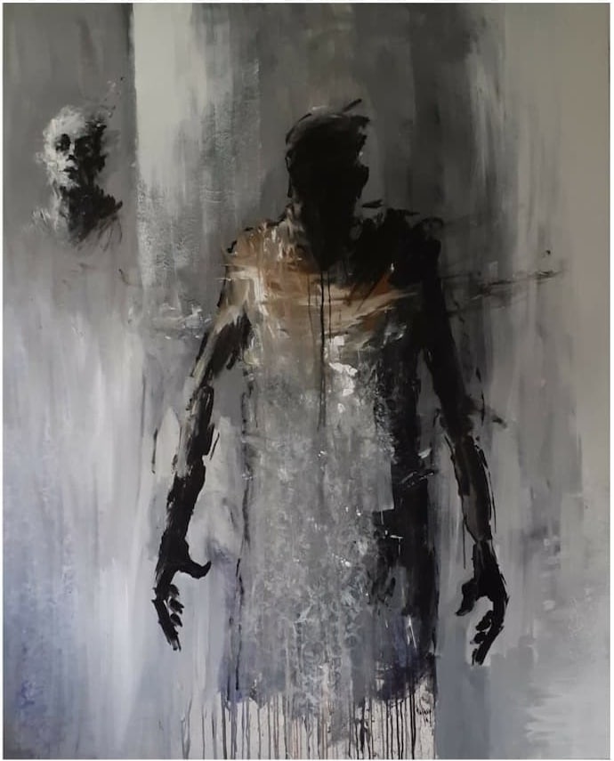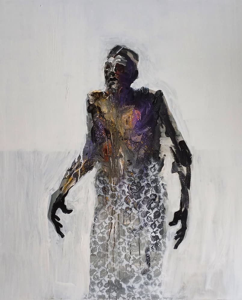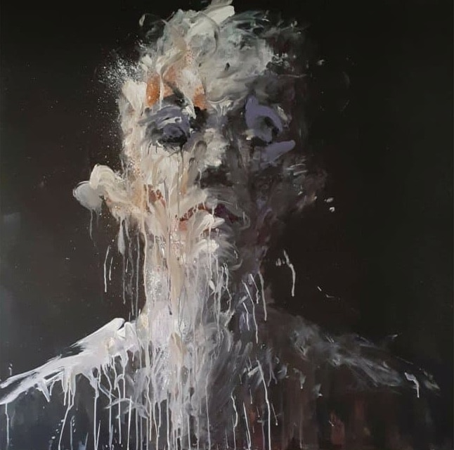 Je peins la tension de la figure humaine. On pourrait dire le rapport entre son réel et sa propre réalité c’est à dire le corps, la texture meme de la matière et la pensée, l’impalpable.