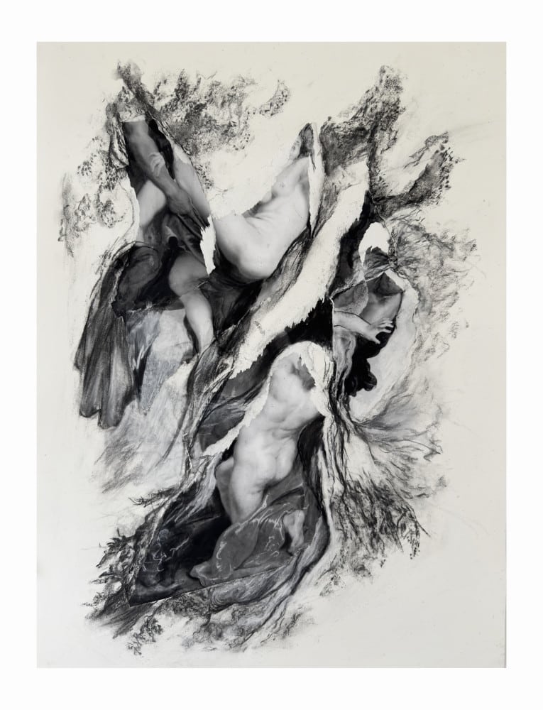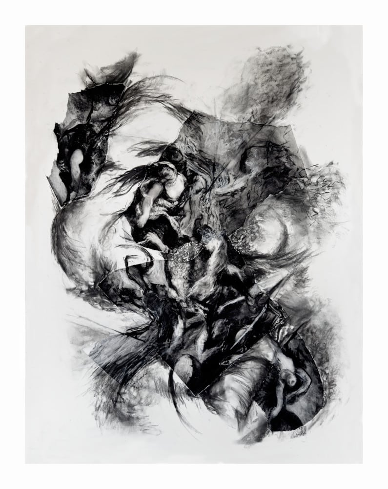 2025 - Collage et dessin au fusain et craie blanche - 60x80 cm