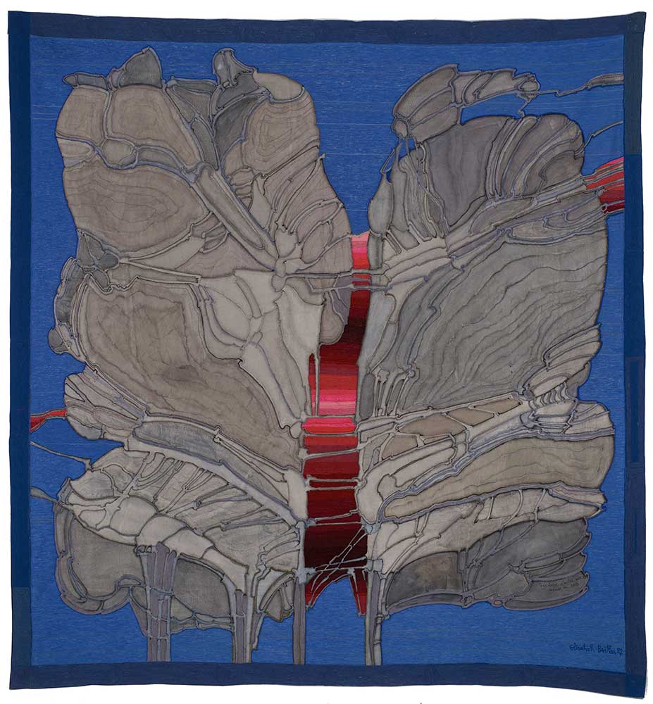 Au départ celui-ci est noir. S’y inscrit un dessin blanc, net, précis comme une carte d’état major. Désir de recouvrir entièrement cette nuit de lumière. De la machine à broder, détournée par moi de son utilisation industrielle, sort une chaînette de laine, aussi fine qu’un crayon, aussi agile qu’un pinceau. Ce véhicule se conduit à l’aide d’un alerte moulinet, d’une précision aigue, grâce auquel toutes les formes sont contournées, enveloppées, labourées en rythmes concentriques ramenant chacune d’elles vers leur noyau. Chaque virage provoque la levée d’un petit relief caractéristique que seule la rapidité de la machine est capable de produire. Sous ce réseau coloré, point par point, la toile noire disparaît. La vitesse de la machine, son parcours dynamique sur la toile entraîne toutes les rêveries vagabondes. Son bruit métallique de petit tracteur couvre tous les autres bruits, remplit le silence de la maison, donne à ma démarche la solitude du coureur de fond.