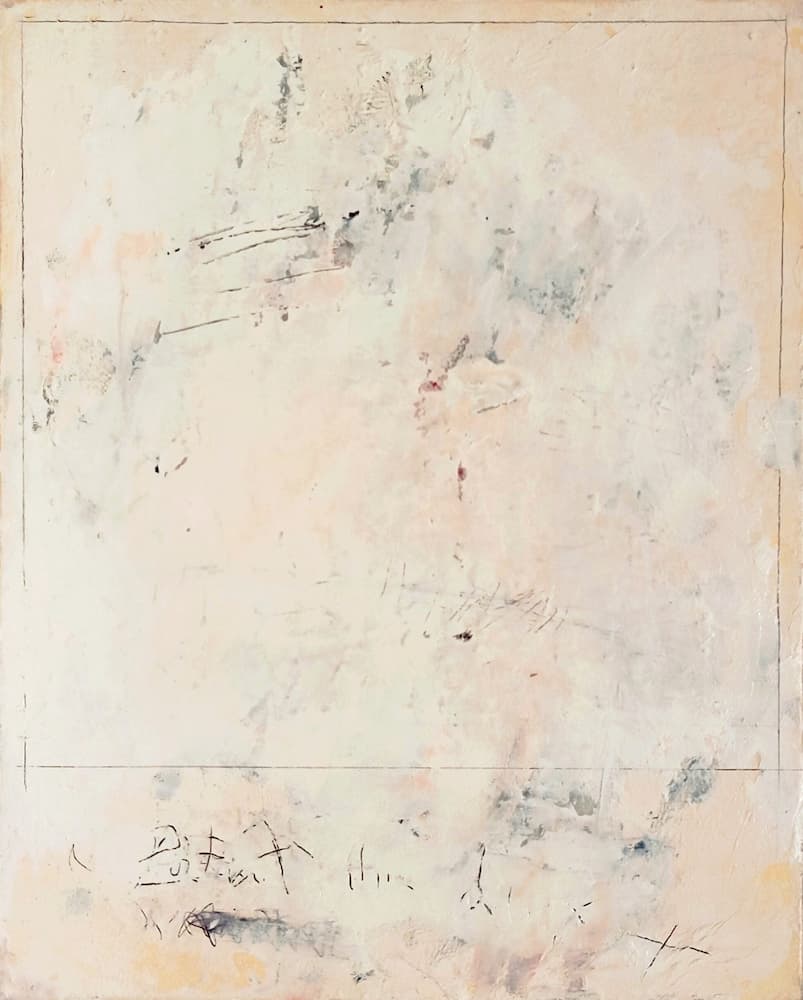 En peinture, les mains trempent dans l’huile, les pigments et l’essence, écrasent le pastel, grattent le plâtre, frottent le papier, maltraitent la toile pour voir ce qu’elle cache dessous ; subtil « sub-tela ». Il y a du recouvrement, des ratures, des cercles, des signes en devenir ou déjà disparus, des petits événements recouverts de blanc et d’oubli avouant qu’ici, un jour, quelque chose est advenu. La main gauche tient le noir, elle descend. La main droite tient le reste, elle monte. Puis il y a la paroi des cavernes, partout présentes. Elles contiennent le mouvement, le vivant. La main-outil confronte le poids primitif – la vie, le Temps, la mort -, contenu dans un présent fuyant, condamné, impermanent, pour le transformer.