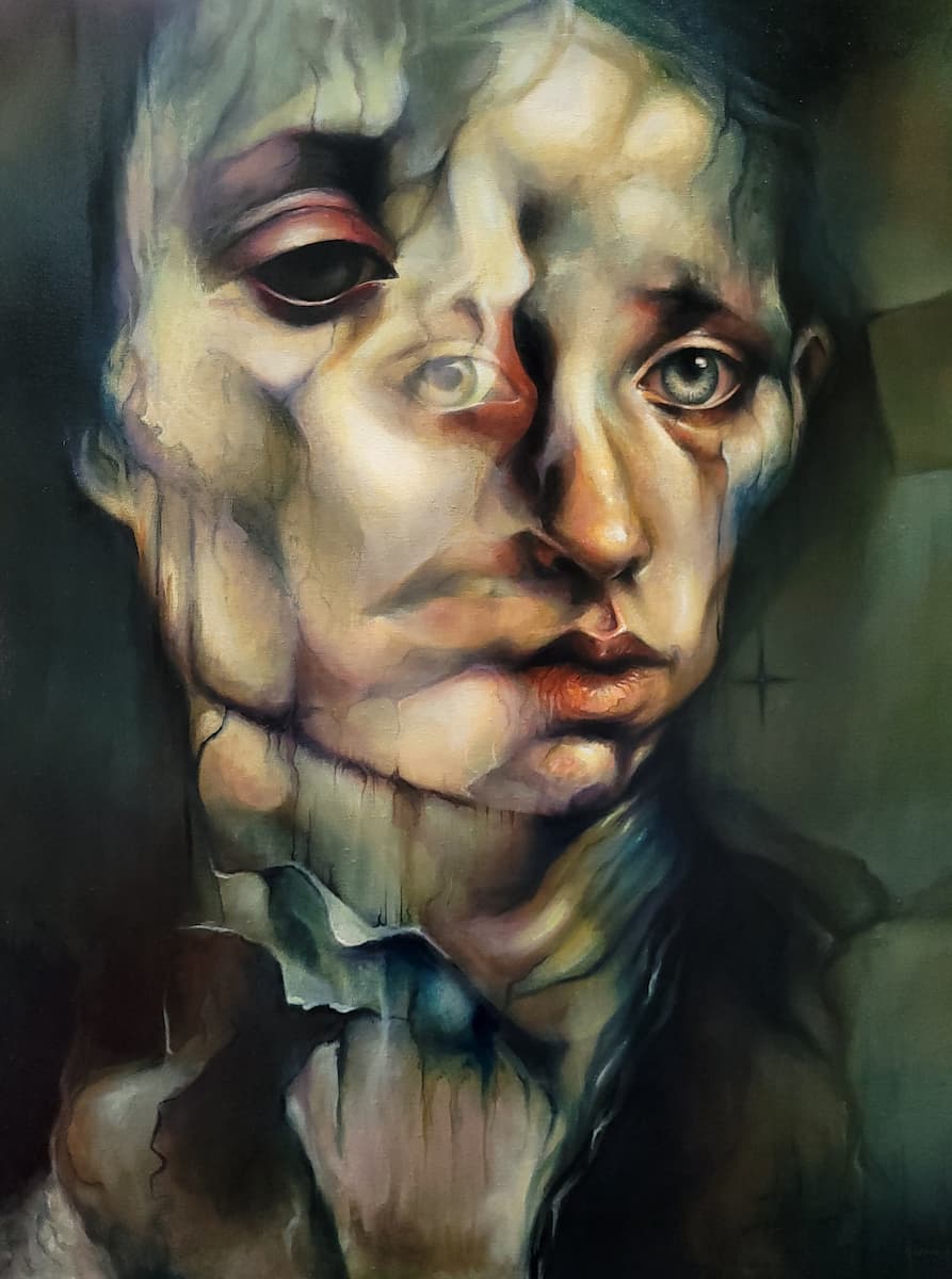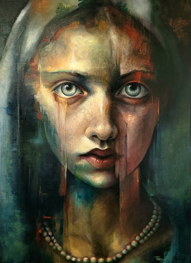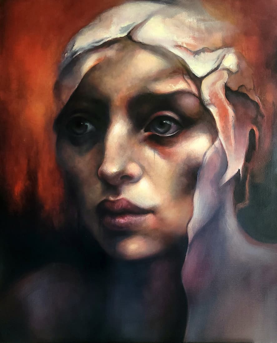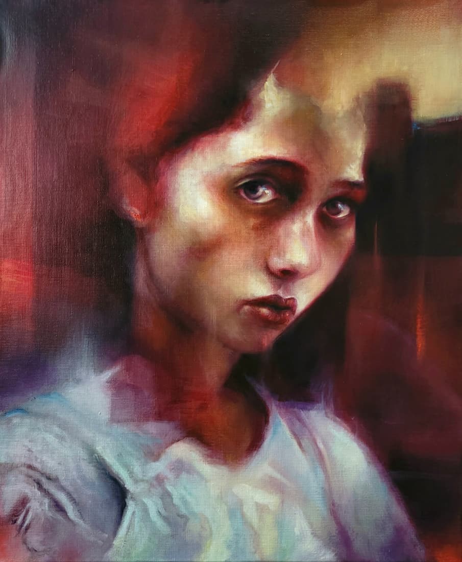 Influencée par les grands maîtres : De Vinci, Van Eyck, mais aussi Le Caravage, Rembrandt, Caillebotte, Millet, Courbet, Turner et bien d’autres, j’explore la tension entre l’ombre et la lumière, la douceur et l’obscurité : le paradoxe même de notre humanité, capable du pire comme du meilleur.