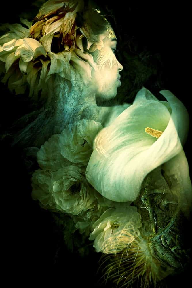 Les thèmes sur lesquels elle crée sont : l’amour, la mort et la complexité du vivant. Les éléments qu’elle met en scène sont : le corps humain, le végétal, l’animal ainsi que le squelette.