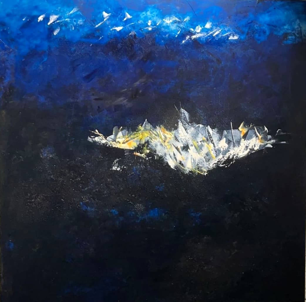 S’immerger dans un univers de nulle part et prendre conscience de son « moi ». Cet état renvoie au silence, à la mouvance, à la tragédie, à la perdition dans un univers qui efface tous les repères établis à la surface du monde. La peinture offre cette possibilité d’abandon, d’égarement dans un coin de l’univers ; c’est se distancer de façon essentielle du monde matériel, se délester des images. Suggérer, sensibiliser sans la représentation et laisser le visiteur libre de toute interprétation. Bien plus que d’essayer de justifier, je laisse au passant la liberté de donner un sens à l’oeuvre.