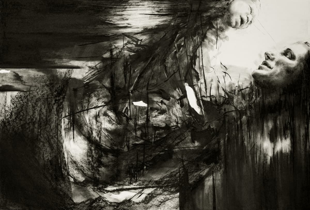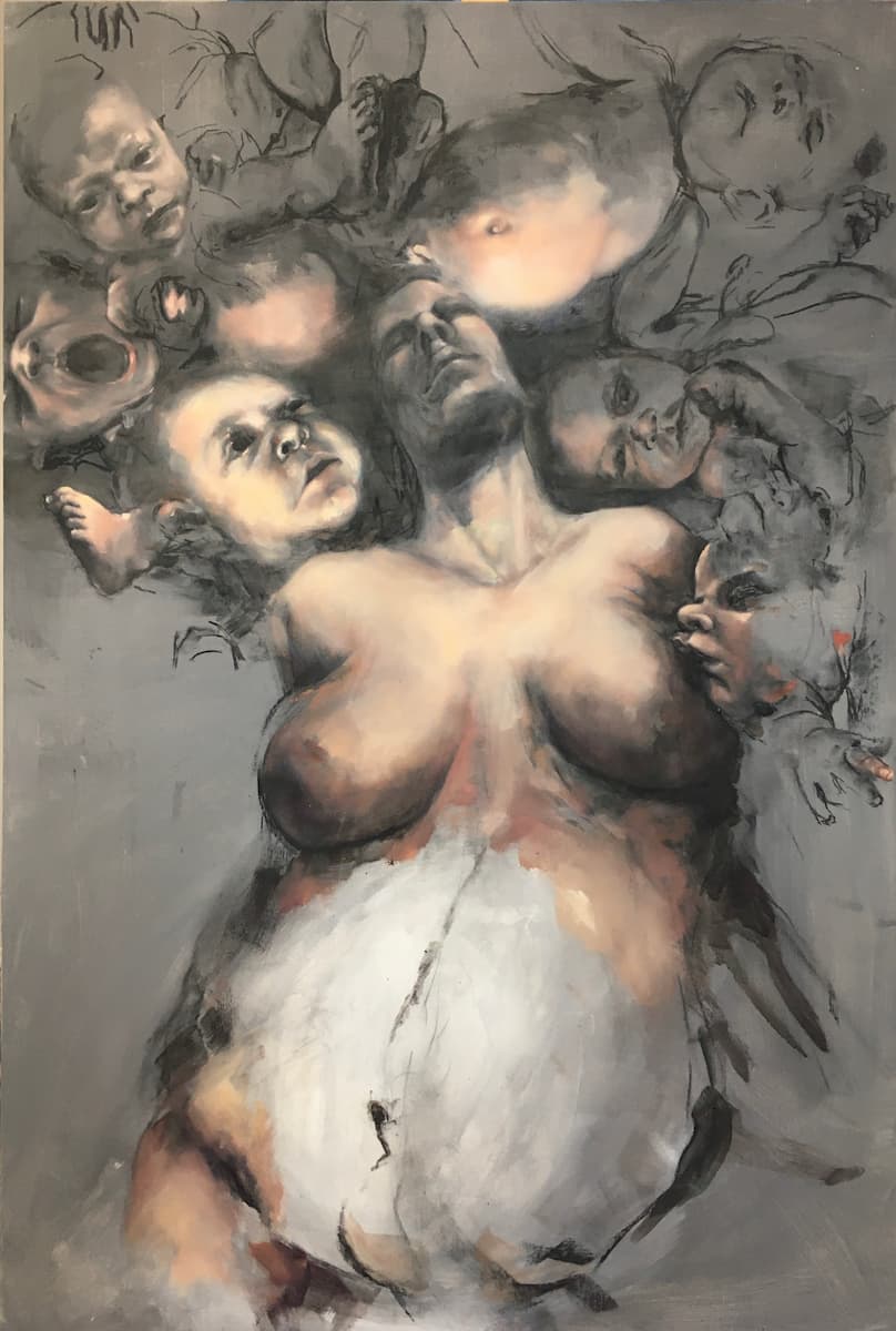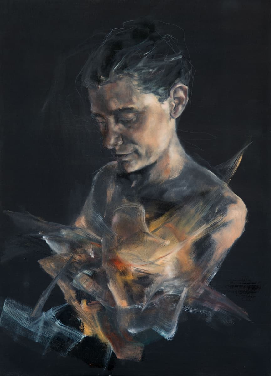 Matière picturales, fragilité, évanescence poudreuse des fusains, texture, effets des huiles, des médiums, des couches superposées, opacité et transparence, matité et brillance…