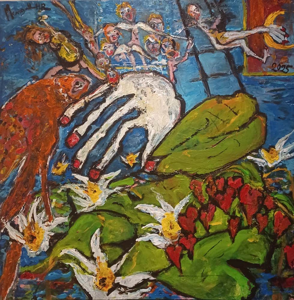 « Revisitons nos classiques » est la nouvelle série de Mengall HR. Elle débute avec sa peinture Hommage à Juliette Mey, jeune cantatrice toulousaine couronnée aux Victoires de la Musique Classique en février 2024. Le peintre gravite autour de thèmes tels que la littérature, le théâtre de l’absurde, les arts, la musique… La peinture « Guerres et paix » est présentée au Salon d’automne à Paris en octobre 2024.