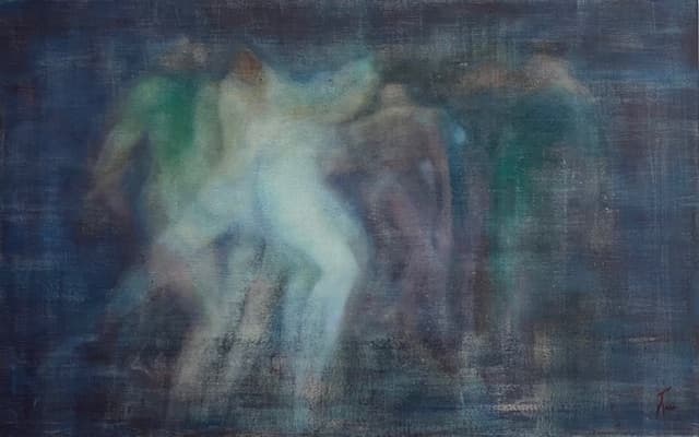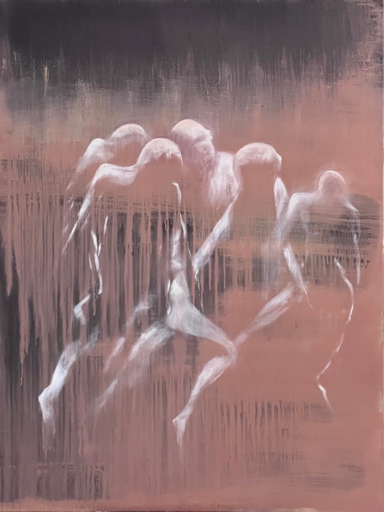 Je cherche à saisir le lien entre la pensée et la rythmique de la représentation du mouvement, une thématique centrale dans ma création artistique. Chaque coup de pinceau est une danse entre la pensée et le corps.