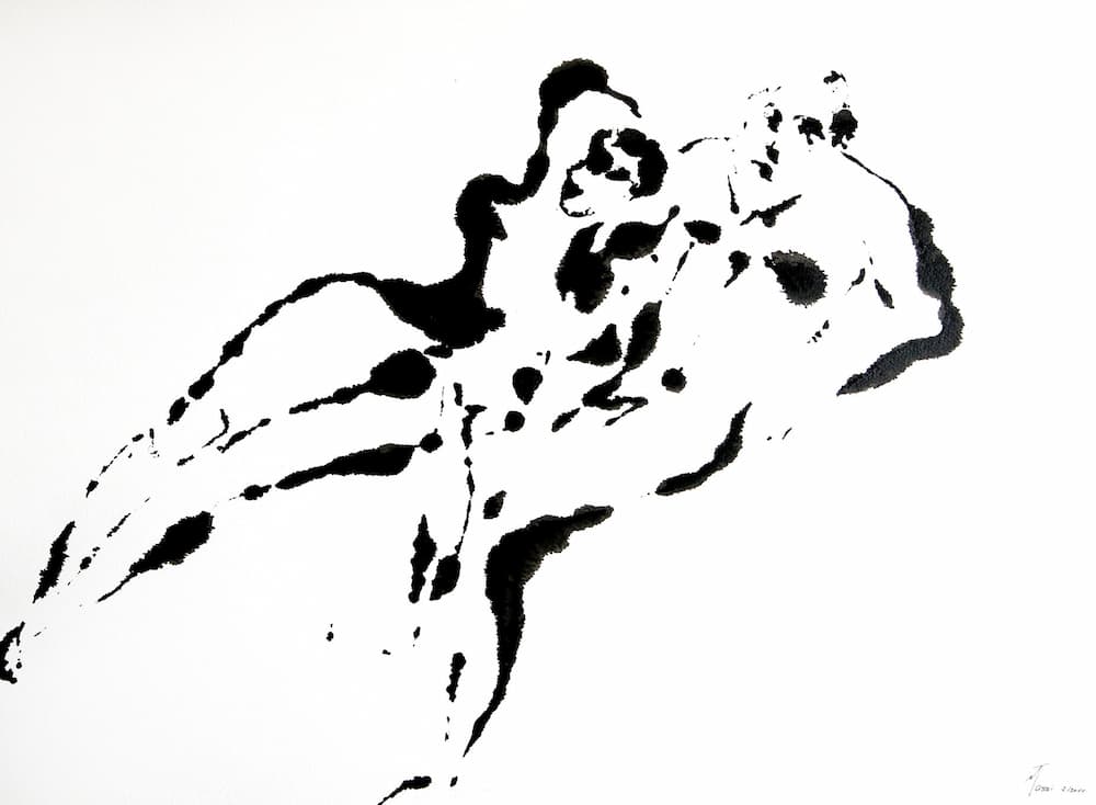 Je crée par séries sur toile ou à l’encre sur papier en explorent le mouvement sous diverses formes.