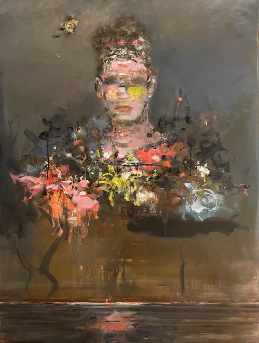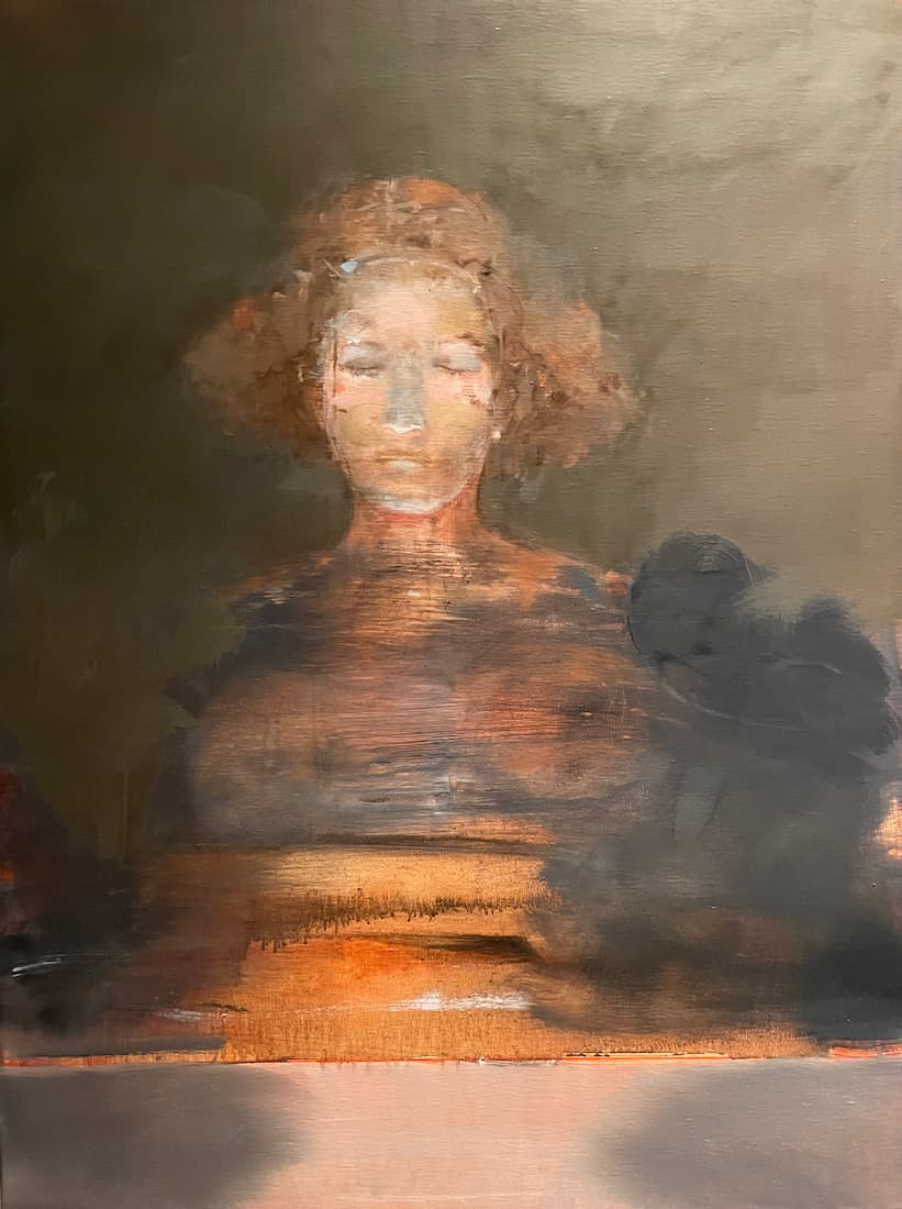 C’est ensuite dans le calme et l’intimité de son atelier que l’alchimie opère. Dans cette atmosphère apaisante, accompagnée par la musique classique, elle reprend son pinceau avec un regard neuf sur le travail de la veille. Sous sa main, l’humain revient au cœur de la toile dans une dimension nouvelle, s’émancipant de son cadre. Misha peint des portraits de mémoire, miroirs de nous-mêmes en équilibre entre ciel et terre, à la recherche d’espace, de liberté et d’absolu. Son œuvre est une invitation à méditer sur l’essence de notre humanité : cette conscience d’être qui nous habite et nous échappe simultanément. Ses teintes, oscillant entre la chair et la cendre, la vie et la mort, instaurent un dialogue visuel qui questionne notre perception de l’être. Originaire de la Drôme, cette artiste nomade a vécu vingt-cinq ans entre l’Europe, l’Afrique et l’Asie, forgeant un travail enrichi de cultures plurielles et de multiples rencontres.