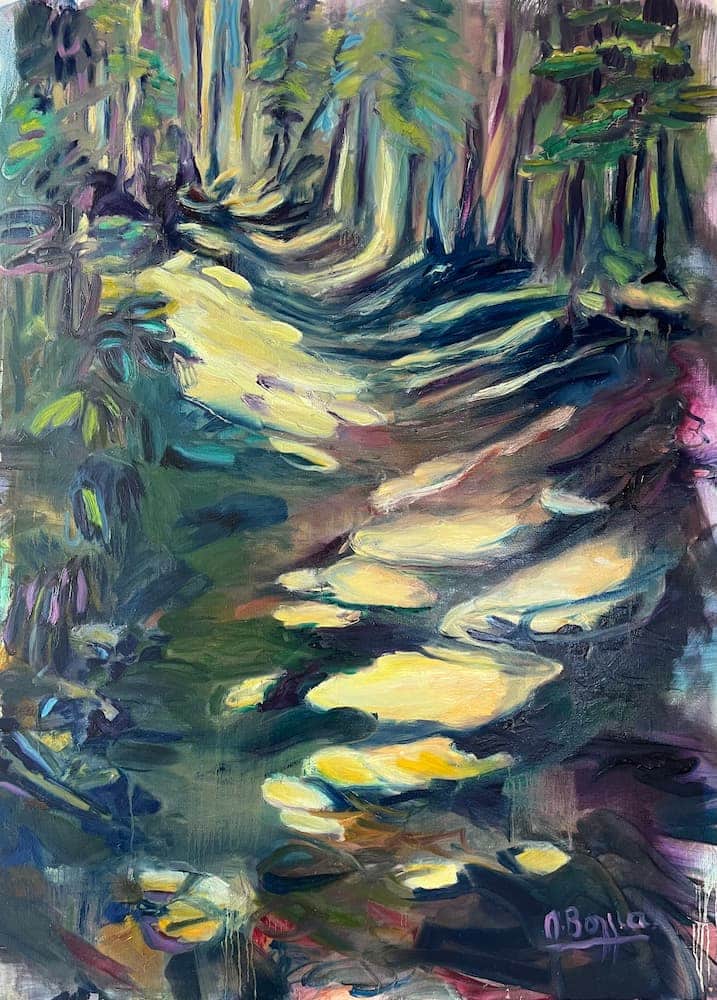 La rencontre marquante avec le peintre J.Y. Guionet a profondément influencé la démarche artistique de Murielle. Son enseignement place l’exploration sensorielle au cœur du processus créatif. L’école Sensualiste s’inscrit dans la continuité contemporaine de l’impressionnisme, de l’expressionnisme et de l’abstraction lyrique.