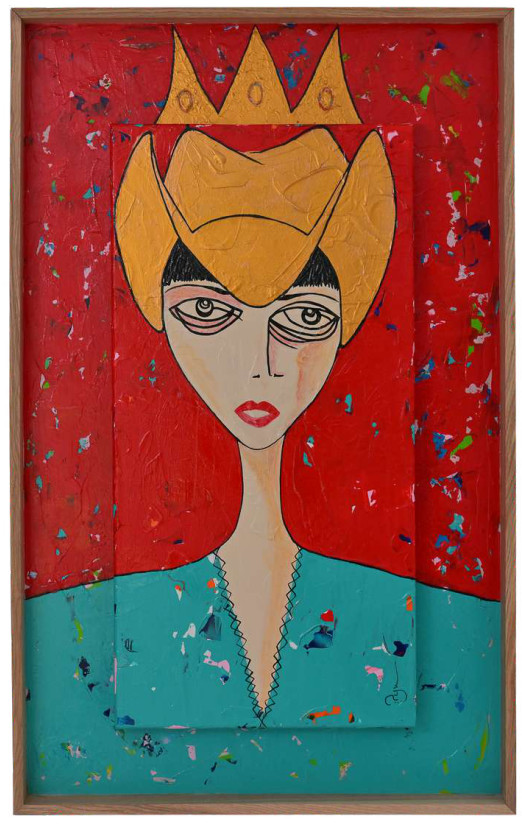 Son univers s’exprime à travers des portraits féminins ou androgynes, des couples, des foules, de couleurs vives ou dorées, selon les séries. Ses œuvres oniriques parfois d’apparence naïve, sont toujours traversées par une intention : questionner, suggérer, dialoguer avec soi, avec l’autre, avec vous.