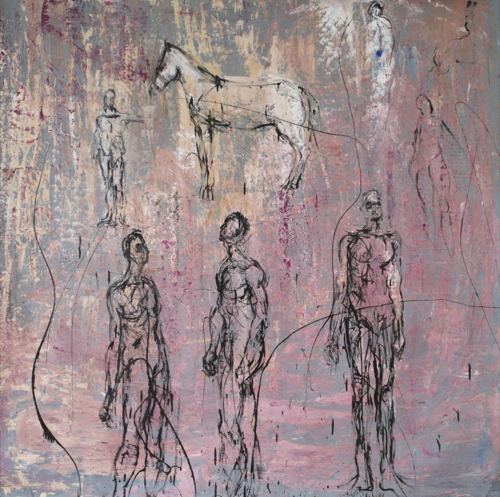 La base de l’œuvre est subtilement graphique, quand même s’avancent, en pure peinture, des teintes brunes, mordorées ou d’un bleu-gris équivoque et ouaté. Dans cette sourde et sidérante scénographie, dans cette prolifération d’absolue liberté, s’agitent les esquisses dénoncées des pantins du monde.