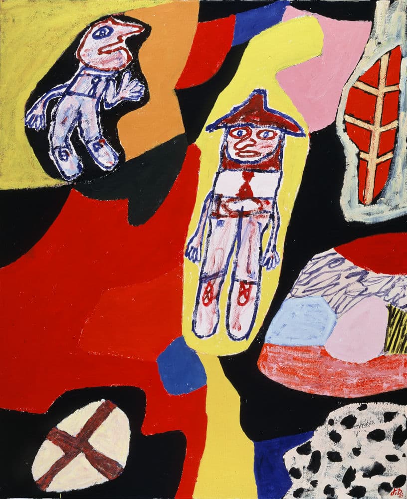 On s’amuse devant « le Restaurant Rougeot » grouillant de personnages alignés frontalement comme dans une salle de classe. « Les théâtres demémoire », compositions de très grande dimension, combinent scènes découpées et personnages épinglés sur une feuille de métal avant le montage définitif, invitation à se perdre dans un monde de souvenirs disjoints, sans cohérence apparente. Enfin l’ultime série « Les Non-lieux », réalisée sur fond noir en 1984, peu avant le décès de l’artiste, prend un ton de manifeste philosophique.