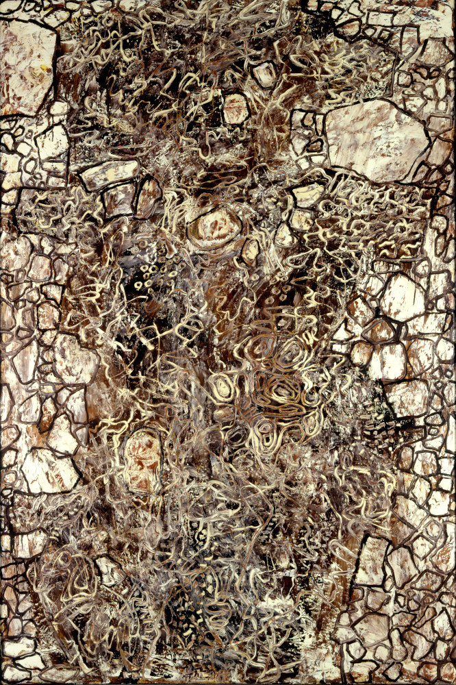 Ces sculptures aux formes tridimensionnelles figurent parmi les travaux les plus connus et sont bien représentées dans l’exposition. Ainsi « Le groupe de trois arbres », version réduite du groupe monumental « Quatre arbres », haut de 14m, érigé devant le siège de la Chase Manhattan Bank de New-York.On découvre au fil des salles les « Travaux d’assemblage » aux textures complexes, tableaux déstructurés assemblés « à ma guise », et aux titres attendrissants : « Le petit jardinier », « Jardin de feuille roucoule ». On est surpris par la variété des techniques, par les effets de matières artificiellement créées dans « les Matériologies » et les fourmillantes « Texturologies », ou par les couleurs criantes des « Psycho-sites ».