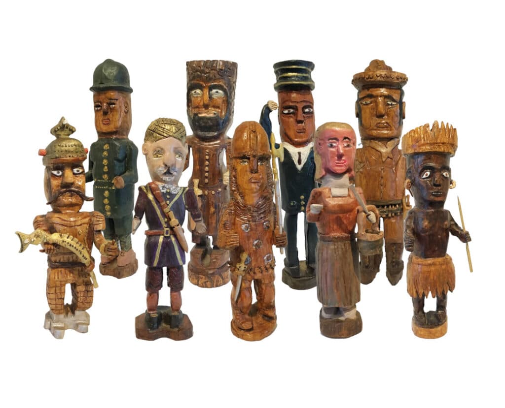 Les personnages célèbres, réels ou imaginaires, d’Elvis Presley à Blanche Neige, signent une réelle vive ouverture au monde, malgré son humilité et sa discrétion proverbiale. Il a en effet vécu totalement refermé sur lui-même, au point que ses voisins ignoraient ce qu’il faisait dans le secret toujours protégé de son petit atelier. Il a d’ailleurs surtout créé à la fin de sa vie. Son œuvre entière a failli être brûlée après sa mort… Elle n’a été retrouvée que quelques années après sa disparition, presque par hasard, dans une petite exposition locale, grâce au regard acéré d’un couple de visiteurs lucides et admiratifs…