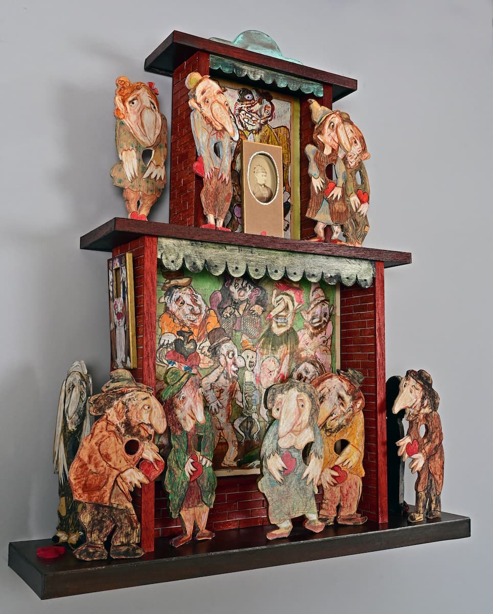 Cette double exposition vous plonge dans un carnaval exubérant où se côtoient des êtres étranges, inquiétants ou rieurs, et une foule de personnages hauts en couleur. Entre réel et imaginaire, leurs œuvres chargées et habitées cultivent une poésie profondément personnelle.