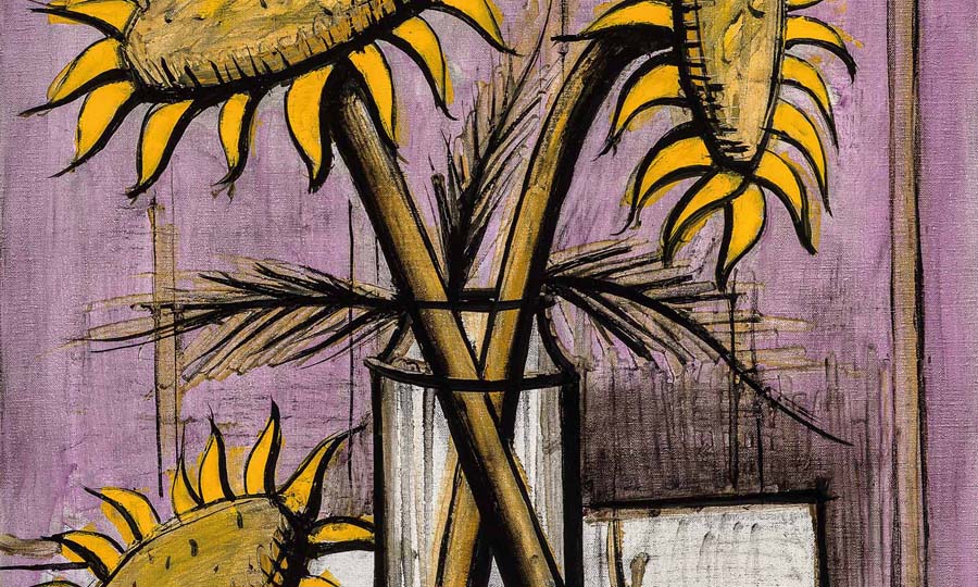 Bernard Buffet évoquait ainsi la peinture : « La peinture on n’en parle pas, on ne l’analyse pas, on la sent ». Sa personnalité va se révéler en 1947 avec ses premiers personnages anguleux qui le classeront dans la mouvance expressionniste misérabiliste de Francis Gruber et de Georges Rouault. Ses thèmes favoris sont variés : le portrait peinture, les animaux, les nus, les paysages, les natures mortes, les horreurs de la guerre, la mythologie, le cirque,…A partir des années 50, il a réalisé beaucoup de visages de clowns tristes au point que ces toiles, devenues emblématiques de son travail, contribuent à le rendre très célèbre. Son style est reconnaissable entre tous par les réseaux de lignes droites et sèches dont il a fait son système pictural. Les couleurs vives et parfois très sombres, comme le noir profond, le gris, le bistre et le vert, témoignent de son angoisse existentialiste et de son hypersensibilité maladive.