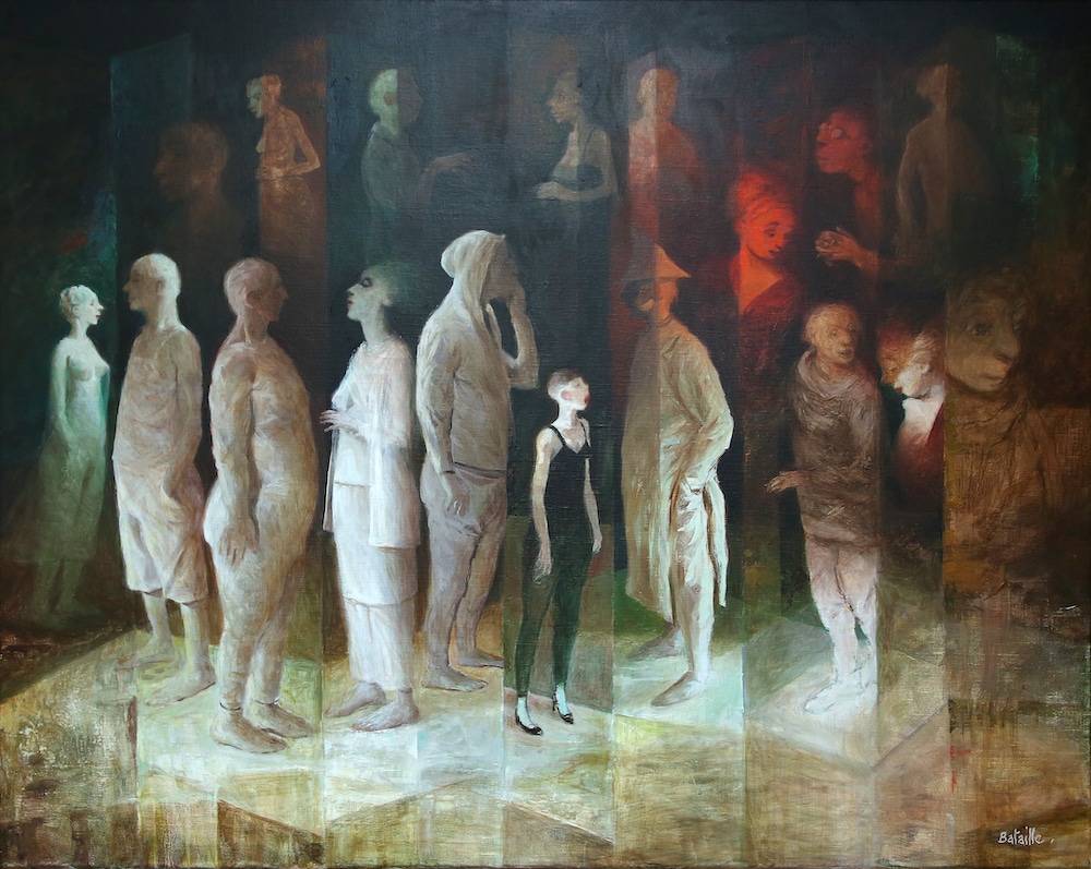 Figurative, narrative, marquée par le surréalisme, la peinture de Bertrand Bataille met en scène des personnages aux situations cocasses et inattendues. Le regardeur va de surprise en surprise en entrant dans ce monde. Entre humour et gravité, l’artiste fait se cotoyer l’irrationnel pour signifier nos peurs et nos inquiétudes et nous aider à prendre du recul par rapport à la réalité !