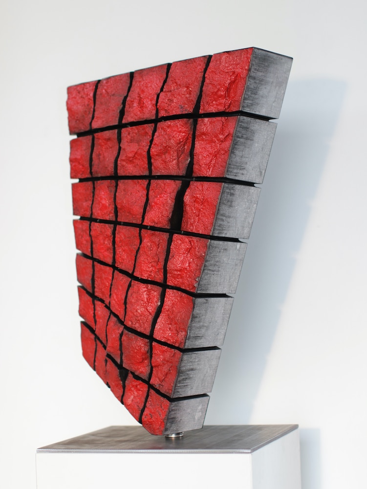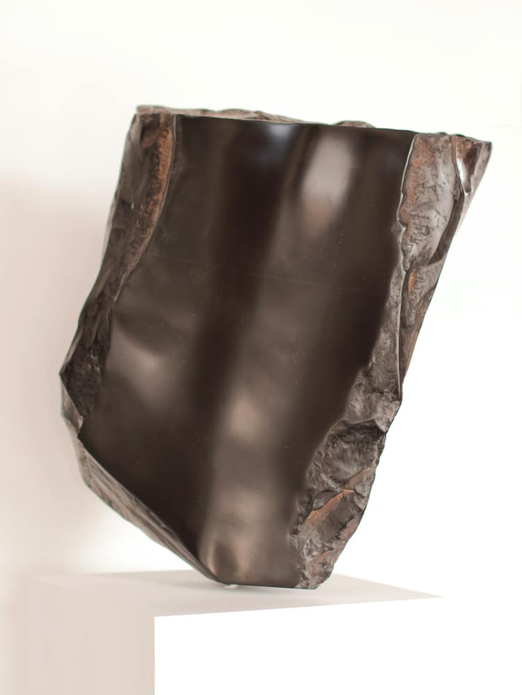 « Martin hollebecq répond par énigmes de pierre aux énigmes du monde….. Ça et là, jetés chaotiquement et comme par hasard, et sans souci des surfaces, il y a des lignes, des torsions, des stries et des fentes qui s’abandonnent aux silences de l’étendue… Sculpture classieuse de haute maîtrise. » écrit Christian Noorbergen.