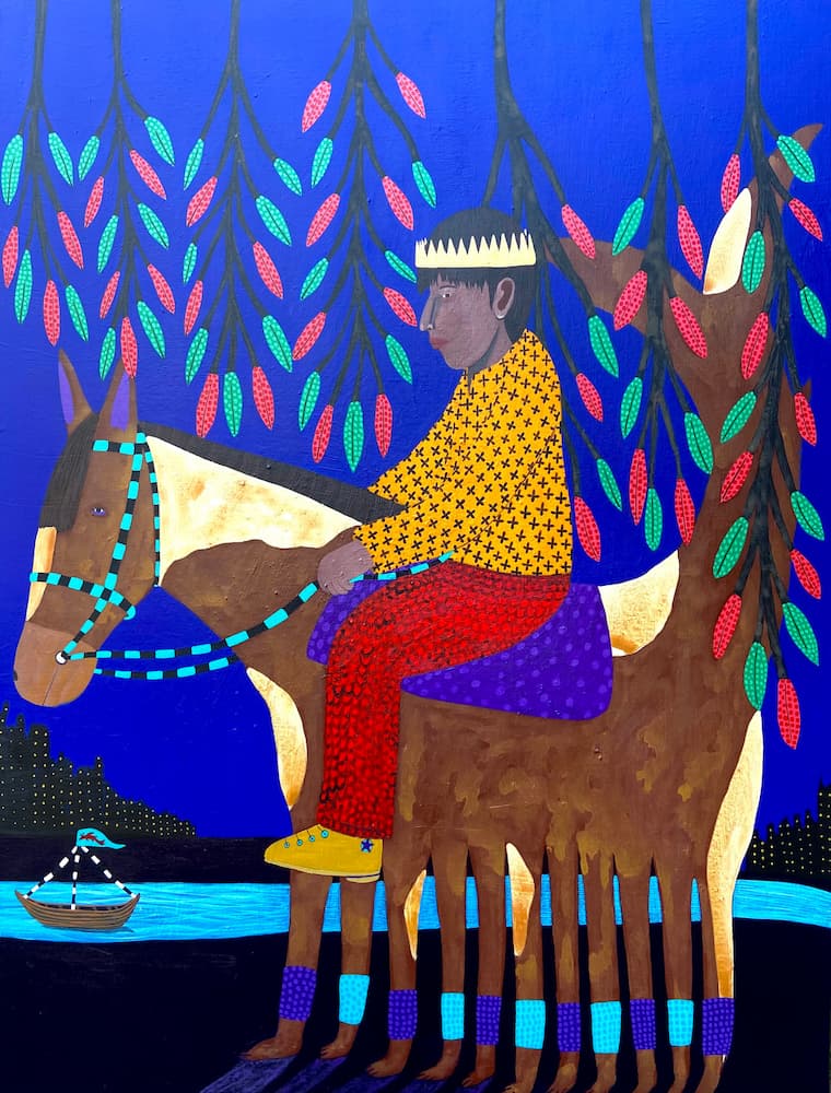 L’exposition rassemble un ensemble vibrant de peintures, de gravures et d’une pièce en céramique. À travers ses créations, Sepulveda nous transporte dans un univers onirique où se mêlent émerveillement enfantin et voix ancestrales.