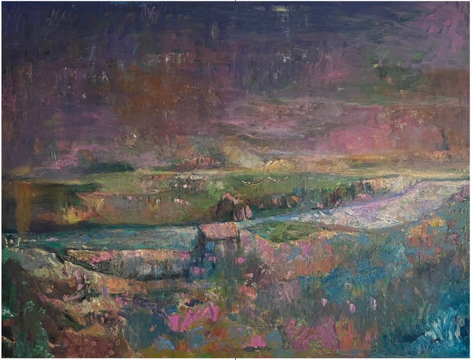 Ramzi Ghotbaldin allie la gravité apprise au Kurdistan à une palette qui s’amplifie en France, créant des compositions habitées de bleus, violets, orangés et verts. C’est une peinture qui s’achève à Paris, mais dont l’âme vient de loin.