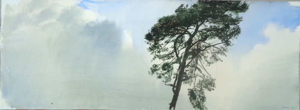 Remi Hamoir nous offre une vision unique de ces arbres géants, ces pins maritimes, qui bordent nos côtes. Ils envahissent le tableau de leur majesté et on se prend à les imaginer dans leur environnement entre soleil et nuages.