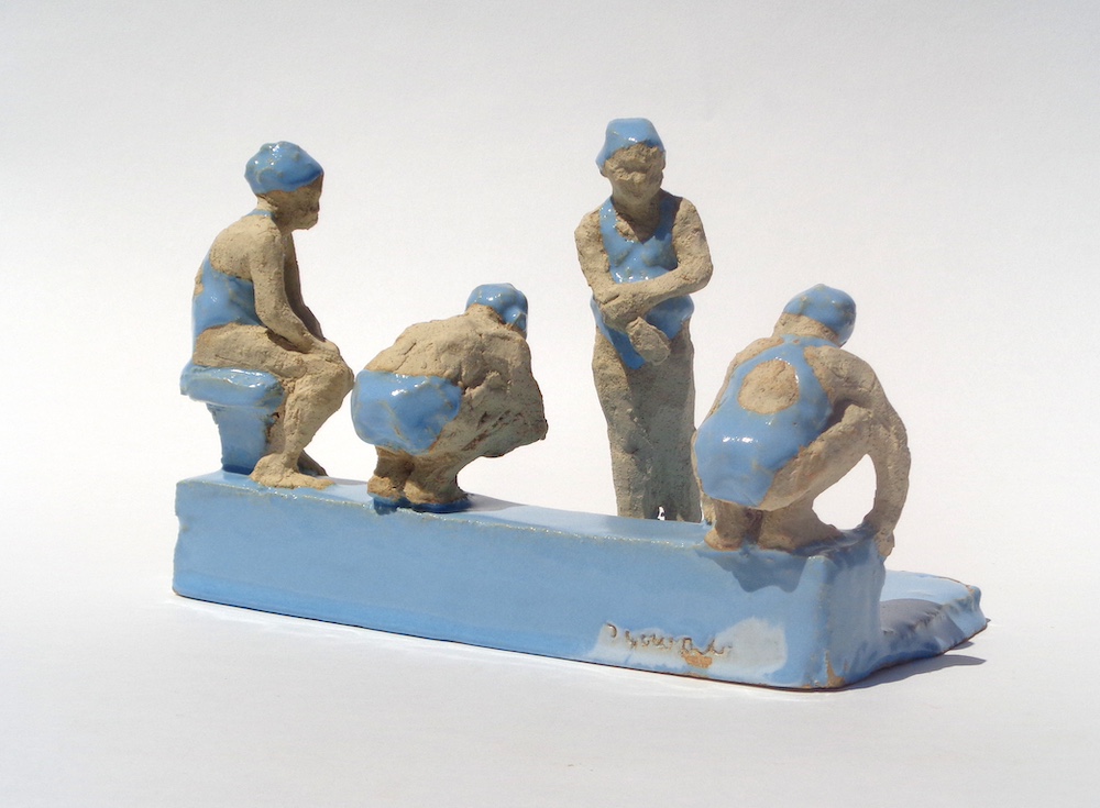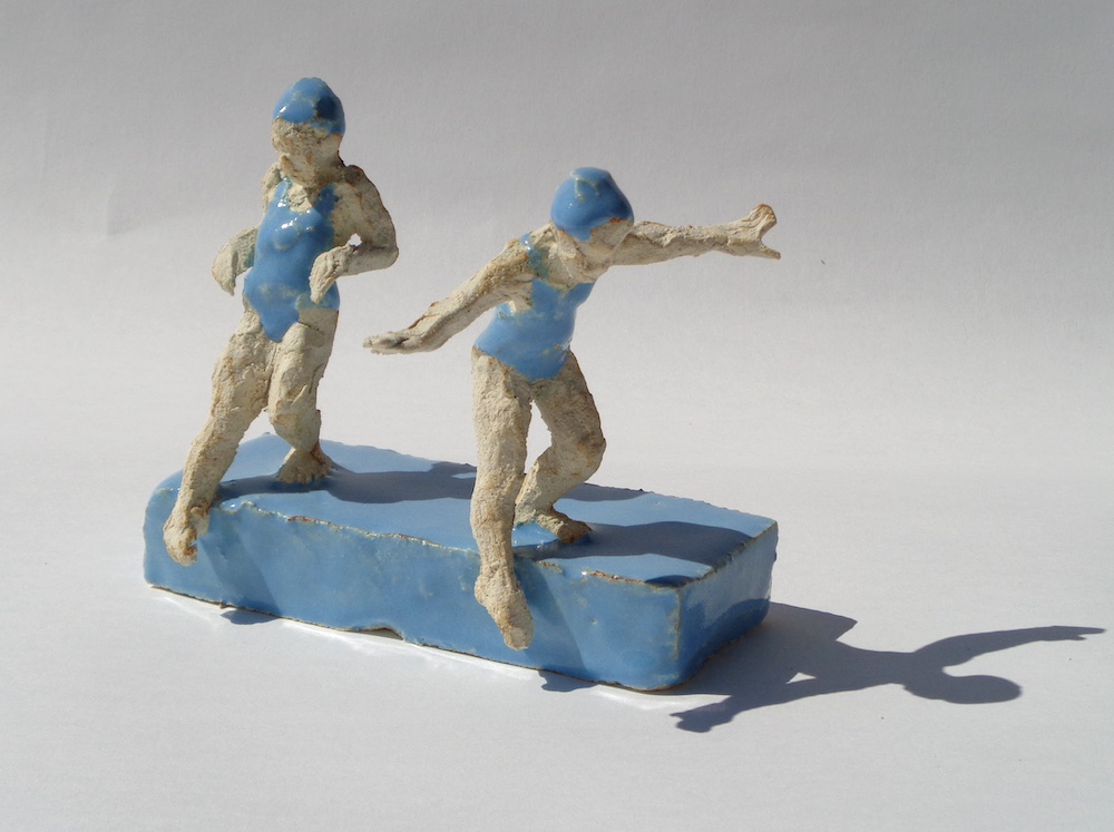 Avec ses sculptures Sophie Gerspacher nous entraînent au bord des piscines. Ses personnages parlent à tous par leurs attitudes qui évoquent l’apprentissage, l’accompagnement, le partage, la confiance ou le jeux.