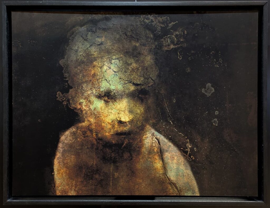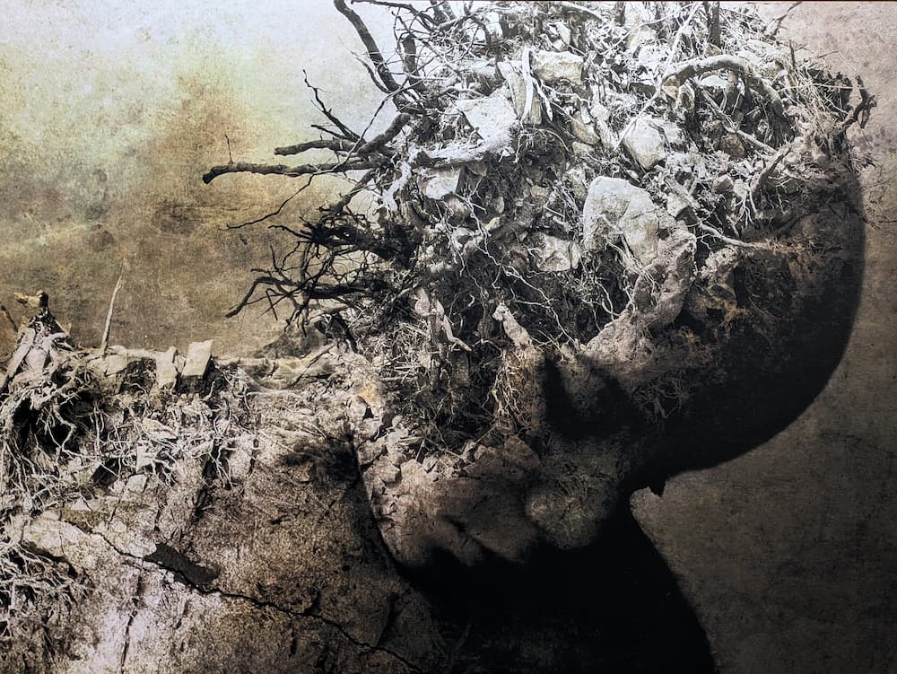 Ce qui frappe au premier coup d’œil, c’est l’imprécision, le flou de ce qui est représenté, à mille lieues de ce qu’on pourrait attendre d’une création photographique et de son mimétisme net présupposé. C’est parce que la photographie n’a pas pour fonction d’apporter des contours, mais de fournir de la matière, une matière humaine, une matière végétale, une matière minérale, une manière que la main de l’artiste va façonner à sa guise pour en faire émerger des formes aussi lisibles qu’inachevées. Profondément plasticienne, au point d’être parfois confondue avec de la peinture, de la gravure ou du dessin, cette photographie est celle de la transformation, tant dans son processus que dans son résultat. Une œuvre de Monch ressemble à un instantané fragile d’une scène en mouvement. Un mouvement lent, très lent, de décomposition ou de recomposition, comme un humus symbolisant à la fois la putréfaction de ce qui fut vivant et le terreau favorable à une fertilité qui va engendrer à nouveau la vie.