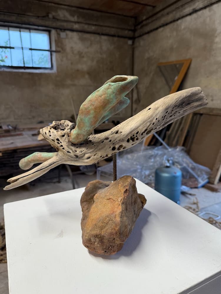 Les arts premiers, ses voix d’ancêtres et sa parole d’arrière-langage, agissent en elle comme une formidable exploration d’âme. Créatrice aventureuse d’une proximité charnelle inconnue, elle garde contact fusionnel avec les forces vitales qui se partagent l’univers. Elle fait remède aux faiblesses de la modernité, comme si l’humaine condition pénétrait enfin la terre. Des entités premières à peine sortis de leur gangue d’origine, et aux allures d’extrême vitalité, sacralisent leur très sensuelle présence. Les puissances convoquées savent répondre à ses appels, et chaque œuvre, comme ciselée au scalpel, marque un temps d’arrêt prodigieux superbe d’impact esthétique, et stupéfiant d’extrême sensibilité.