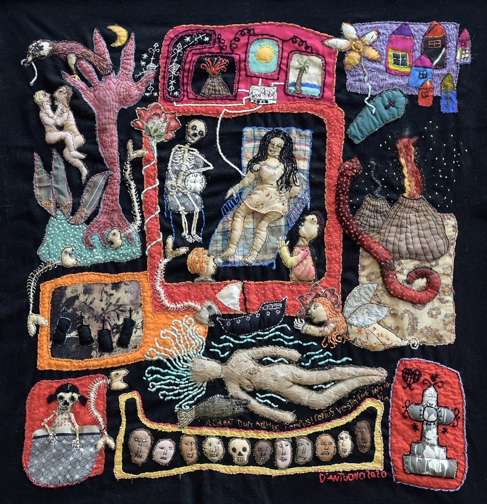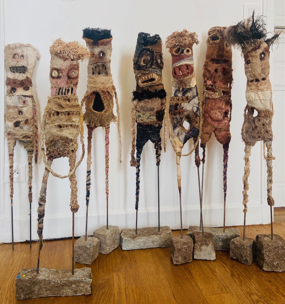 Bruts ou surréalistes, les artistes convoquent souvent des matériaux de récupération, les assemblent, et recomposent un univers à la mesure de leur sensibilité. Ainsi Josette Rispal et ses Vestiges, Barbara d’Antuono et ses inquiétants Tableaux textiles marqués par le vaudou, Marion Oster et sa vision du monde façonnée par une enfance africaine mâtinée de rites et de croyances. Les canevas quelque peu « kitsch » de Lili Simon voisinent avec les délicats fragments de l’enfance chinoise de Liyu Chen. Gilbert Peyre et ses constructions loufoques cohabitent avec les fantastiques compositions bleues de Christine Sefolosha. Micheline Jacques installe, elle, des sculptures en trois dimensions de taille humaine, troublantes et dérangeantes.