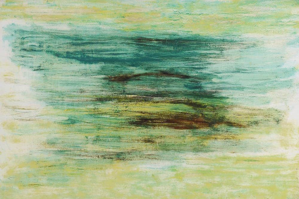 Laubiès privilégie la sobriété asiatique, l’humilité d’une création exigeante, et l’éloignement de tous les divertissements occidentaux. Même si, en 1954, grâce à l’appui de Jean Fautrier, il obtient le prix Fénéon, même s’il est un des tenants majeurs du “nuagisme“, René Laubiès passe le plus clair de son temps en Inde, dans un dénuement matériel saisissant.