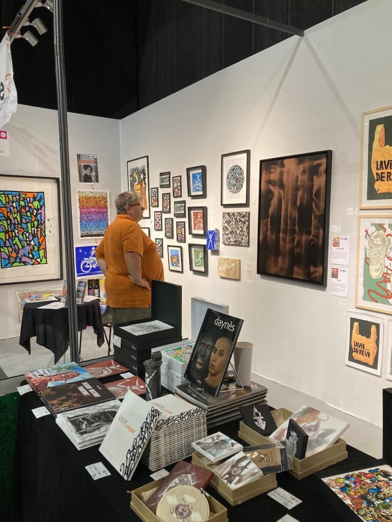 On déambule, on s’arrête, on échange. Nous admirons le travail de Gregory Valentin, Marie Amedo… artistes dont les créations ont particulièrement attiré notre attention. Nous avons aussi découvert de nouveaux talents et repéré le stand du Musée Parcelle473, qui proposait une belle sélection.
