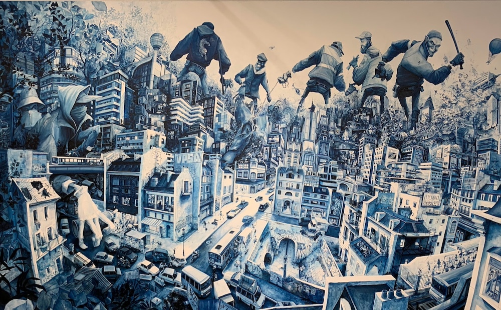 Dès l’entrée, l’atmosphère est électrique. Les gradins rouges du Zénith, habituellement occupés par les fans de musique, servent de toile de fond à un dédale d’œuvres. Plus de 90 artistes (peintres, sculpteurs, photographes, et street-artistes) ont investi les lieux, exposant plus de 1 500 créations.